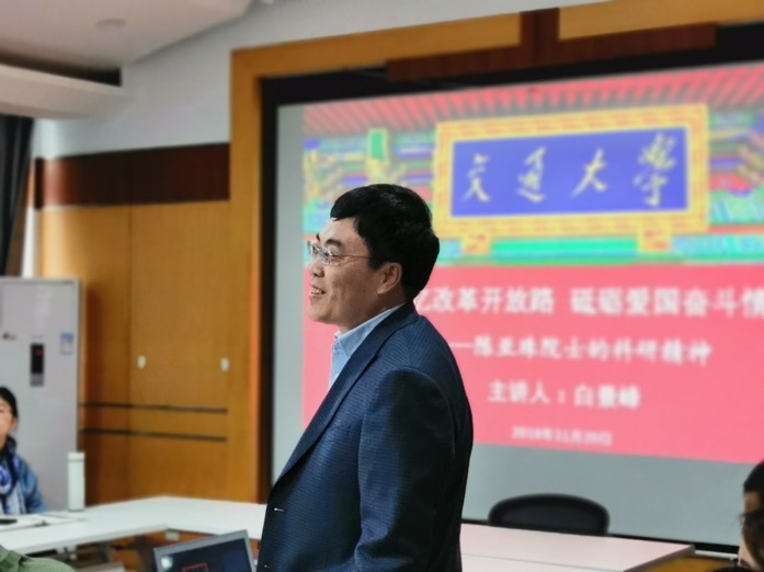 2019年11月20日下午,Med-X研究院431会议室座无虚席,白景峰教授为3200威尼斯vip2019级新生带来了一场精彩的“追忆改革开放路,砥砺爱国奋斗情”讲座。作为学校“不忘初心,牢记使命”主题教育的重要内容,讲座通过讲述陈亚珠院士不懈奋斗的科研之路和一往无前的科研精神,激励在场的各位同学志存高远、脚踏实地,坚定理想信念,恪守科学道德。学院党委副书记孙建奇,校关工委成员、学院退休教师党支部书记王一抗,党建指导教师叶璐参加了此次活动。