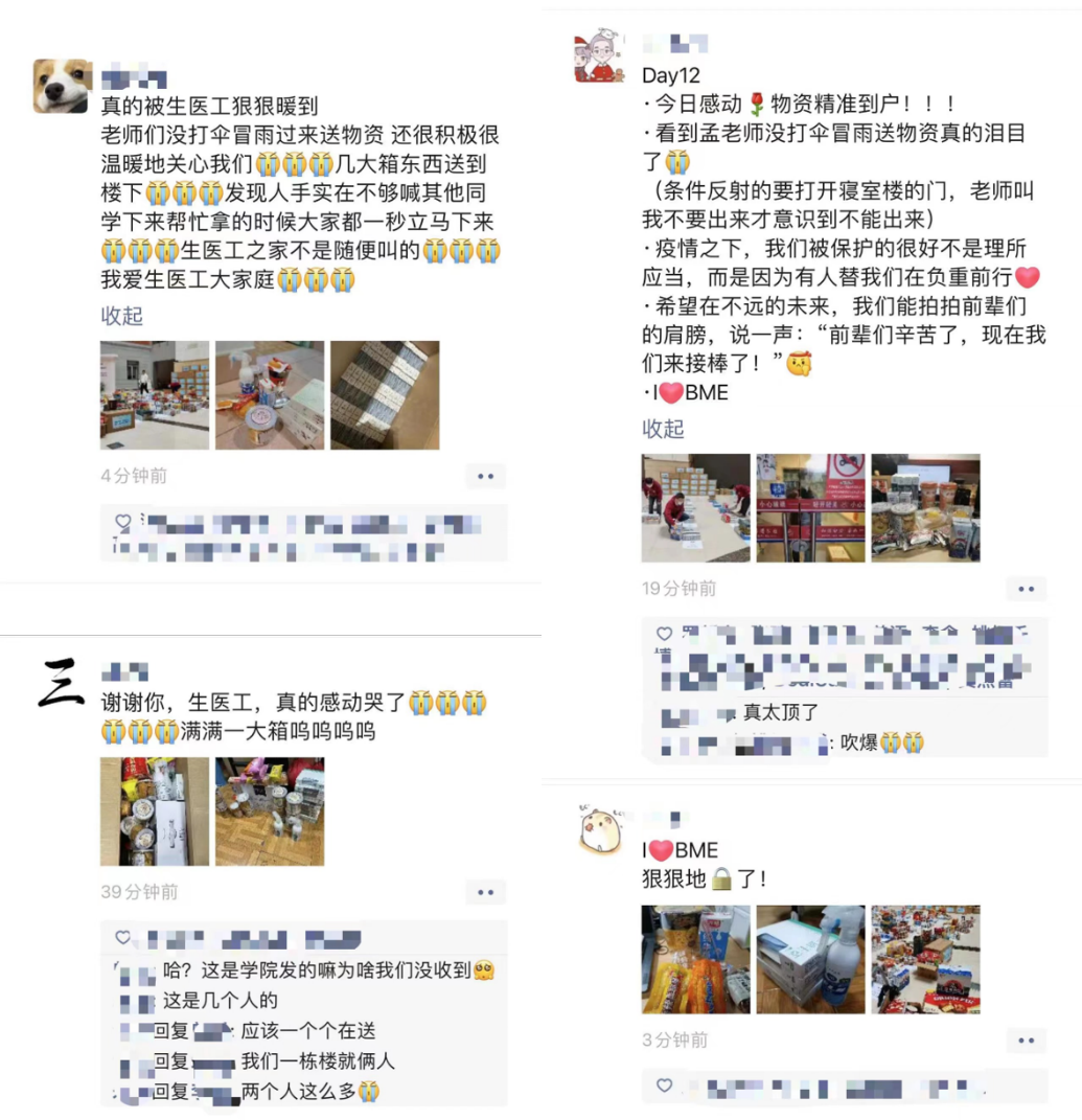 当他了解到学院校友和学生家长捐献了大批防疫物资即将抵达后,他第一时间响应,协调物资入校及分配等相关事宜。在收到物资后,孟祥琦和几位志愿者骑着满载着防护物资的三轮车穿梭于校园的各个生医工学子宿舍楼之间,只为可以第一时间为在校学生增添一份安全与守护;一连几天,从早到晚不停歇的运送物资工作让孟祥琦的膝盖旧伤复发,但他依旧咬牙坚持。作为党员的他用自己的实际行动,践行着守护学生的责任与担当。