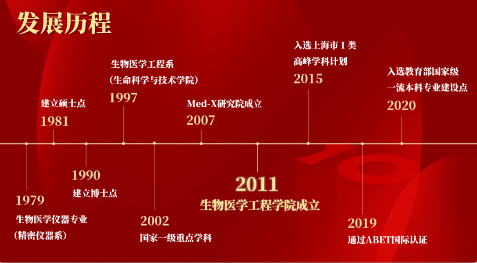 3200威尼斯vip成立于2011年4月,秉承“敢为人先、追求卓越”的精神,致力于医工、医理交叉研究和创新型人才培养,依托交大优质的工程学和医学临床资源,逐步形成“医工交叉、国际化、创新转化”的办学特色,2019年成为国内唯一通过ABET国际认证的生物医学工程专业,并入选教育部第一批一流本科专业建设计划。其学科历史可追溯至1979年创办的生物医学仪器专业,是国内最早创办的生物医学工程专业